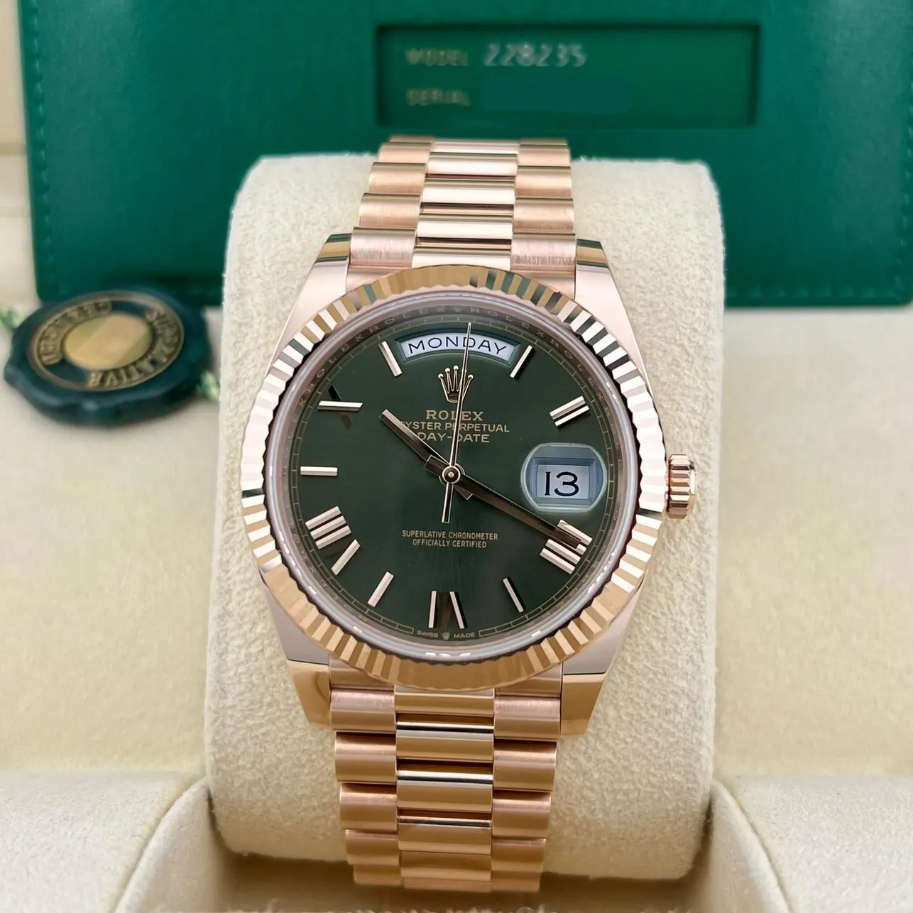 2023 Rolex Day-Date 40 Rose Gold / Fluted / Olive-Green / Roman / President